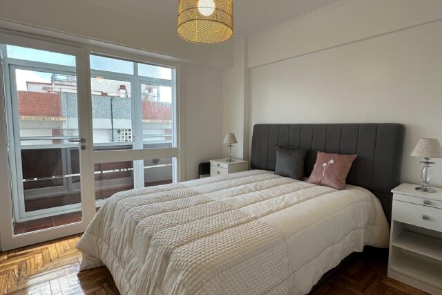 – Dormitorio principal con piso de parquet plastificado, calefactor, somier de 2 plazas, placard y salida al balcón corrido.