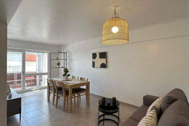 – Living comedor a la calle con piso de porcelanato y calefactor.