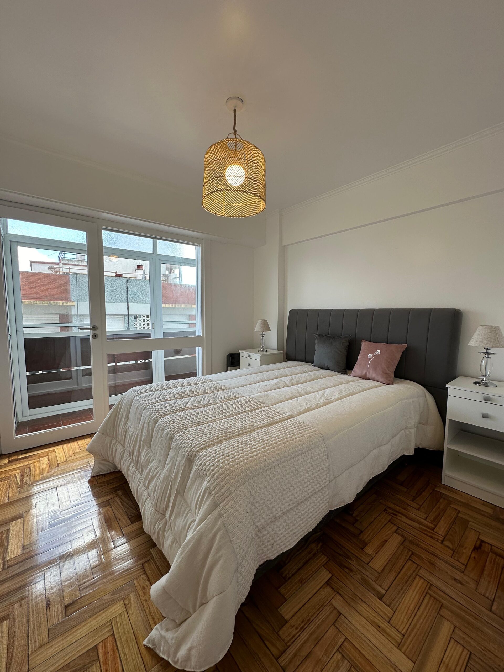 – Dormitorio principal con piso de parquet plastificado, calefactor, somier de 2 plazas, placard y salida al balcón corrido.