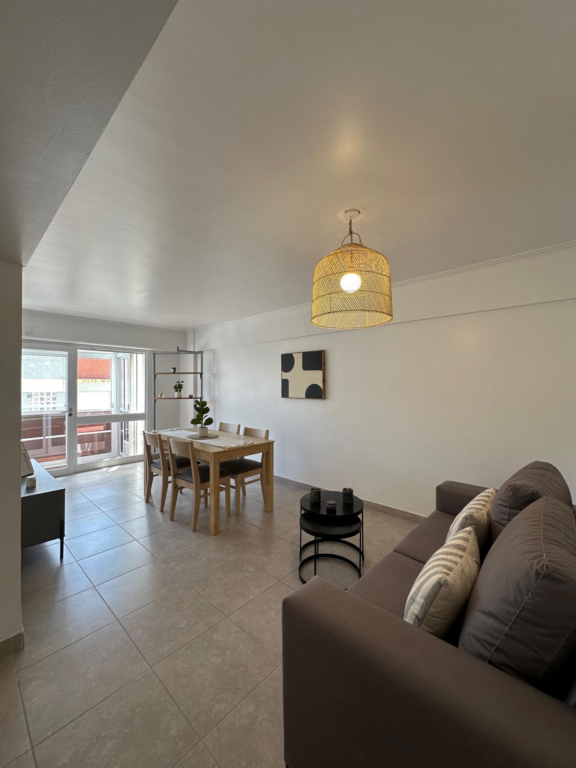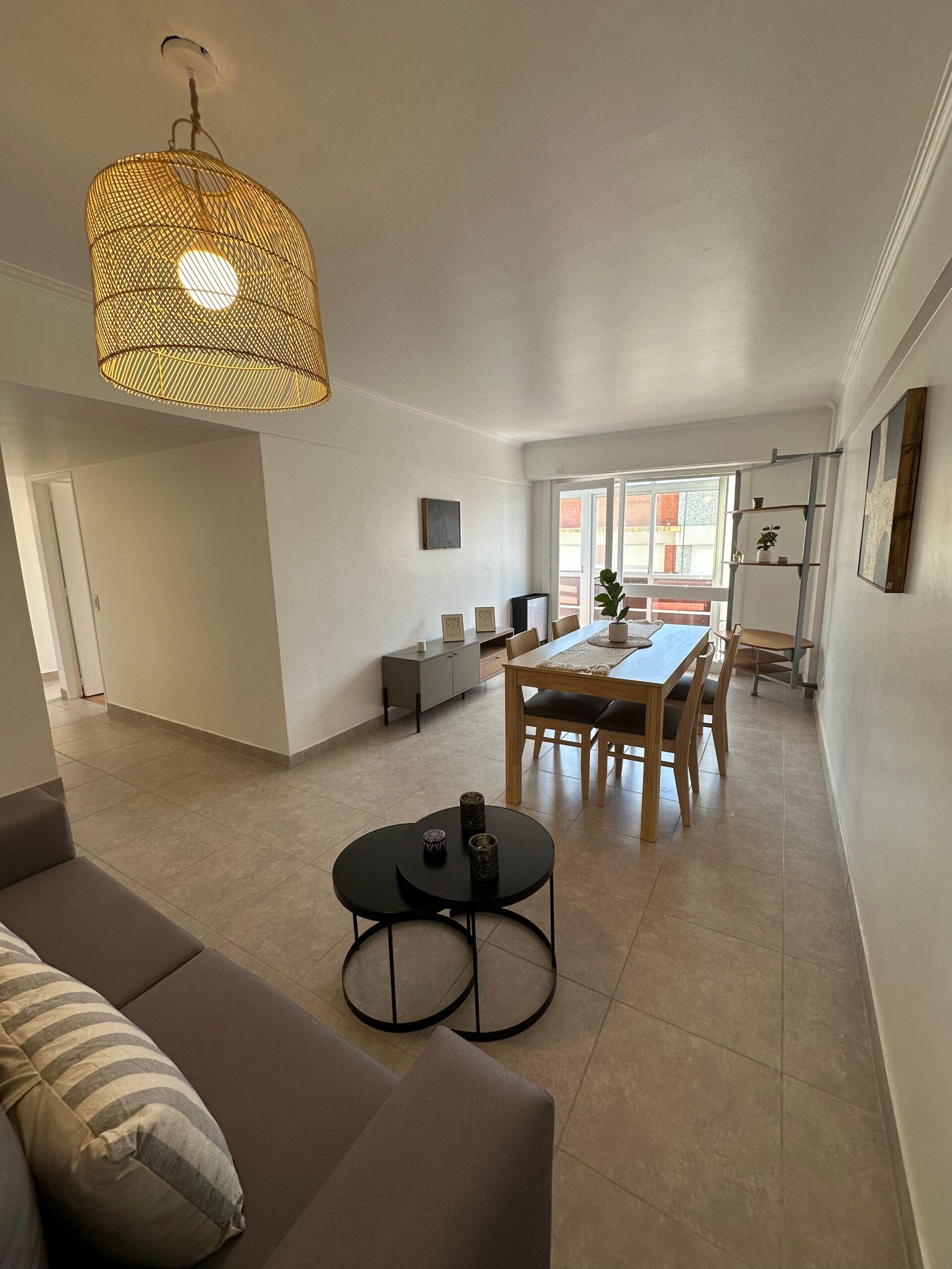 – Living comedor a la calle con piso de porcelanato y calefactor.