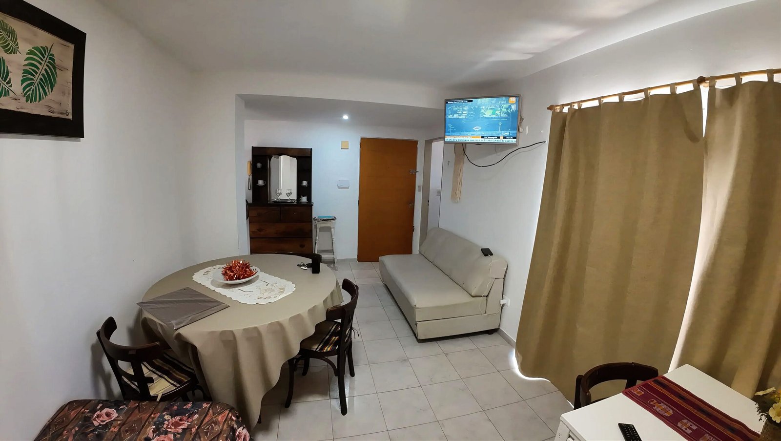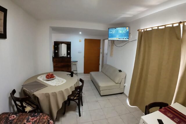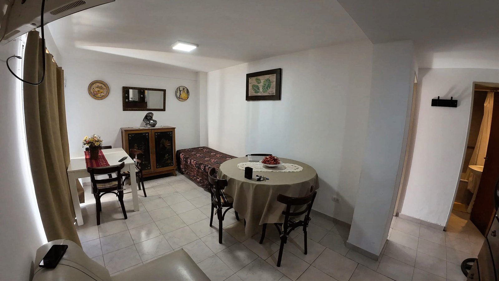 LIVING COMEDOR CON SOFA CAMA, CAMA SIMPLE CON BUEN COLCHON Y DOS MESAS