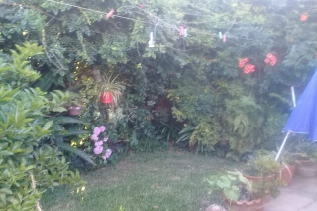 SALIENDO DE LA GALERÍA, LLEGAMOS AL PATIO, CON ALGO DE VERDE, UN LAVADERO CERRADO Y UN QUINCHO CON PARRILLA, DESDE EL PATIO SE PUEDE ACCEDER POR PASILLO HASTA LA COCHERA.